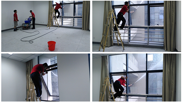 使用玻璃刮,抹水器,無泡玻璃水,強力清洗劑,徹底清除污垢,包括窗框清理,保護膜的清理,窗戶縫的清洗,對一些頑固的水泥點膠質(zhì)可用玻璃鏟刀去除,藥水中有防靜電成分,經(jīng)擦拭過的玻璃、窗框晶瑩光亮,不沾灰。